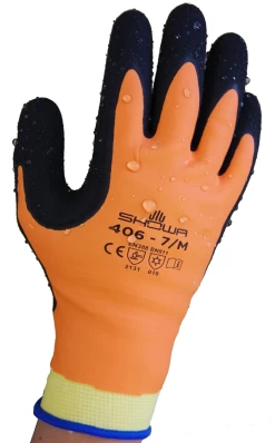 SHOWA 406 Kältebeständige Schutzhandschuhe Mit Latexschaum Beschichtung (10 Paare In Paket), Orange