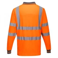 Portwest S271 – Warnschutz Polo-Shirt Langarm Aus Baumwolle Mit Reflexstreifen, Atmungsaktiv, Orange