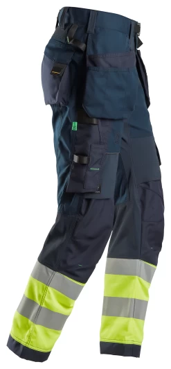 Snickers 6243 Warnschutz-Stretchhose (High-Vis Kl. 2) Mit Holstertaschen, Reguläre Größe, Gelb-Blau