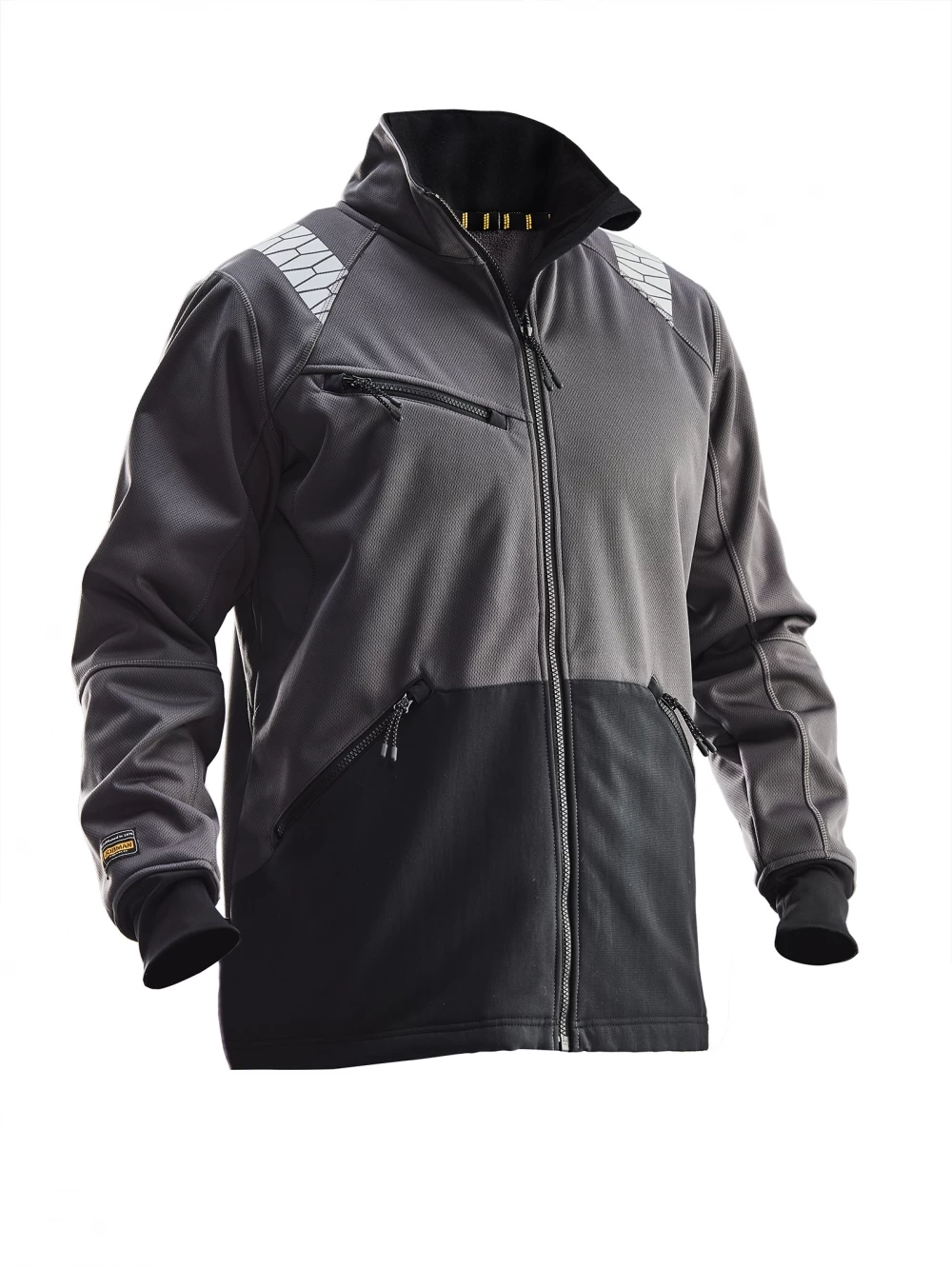 Jacke aus dreilagigem Softshell, außen in „Birdseye-Technik“ ausgeführt, wind- und wasserabweisende Membran und Fleece auf der Innenseite. Die Jacke ist leicht und weich und bietet Bewegungsfreiheit. Verstellbarer Kordelzug am Bund. Schützt vor Wind und leichtem Regen (10000 mm Wassersäule, unverschweißte Nähte) und ist atmungsaktiv. An exponierten Stellen mit schwarzem Gewebe verstärkt. Schwarze Rippbündchen an den Ärmeln. Geräumige Fronttaschen mit Reißverschluss. Brusttasche mit Reißverschluss und D-Ring für Ausweishalter. Front-Reißverschluss mit innenliegender Sturmleiste zum Schutz vor Zugluft und Scheuern am Kinn. Reißverschlussschieber mit reflektiven Elementen. Nahtlos weiche reflektive Streifen mit Jobman-Design. Reflektierende Streifen auf den Schultern und im unteren Rückenbereich für optimale Sichtbarkeit. 100 % Polyester
