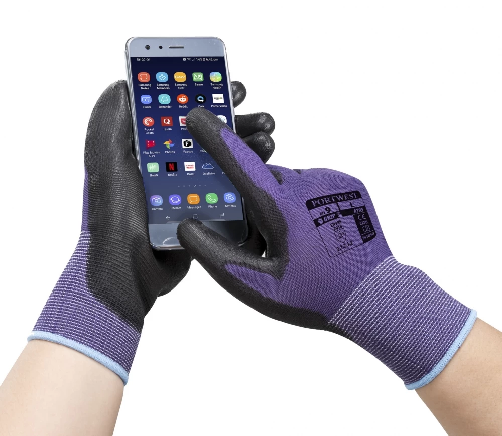 Portwest A195 – Touchscreen Schutzhandschuhe mit Beschichtung aus Polyurethan, atmungsaktiv, abriebfest