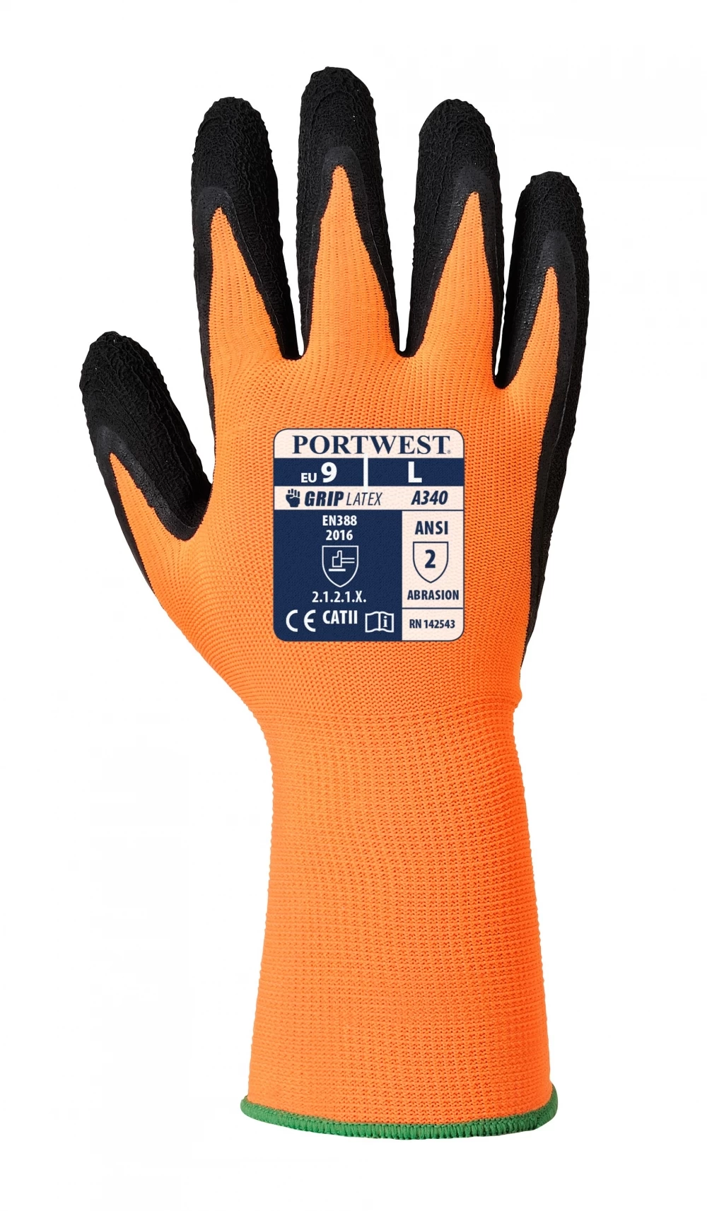 Portwest A340 – HiVis Grip Schutzhandschuhe aus Polyester mit Beschichtung aus Latex, atmungsaktiv