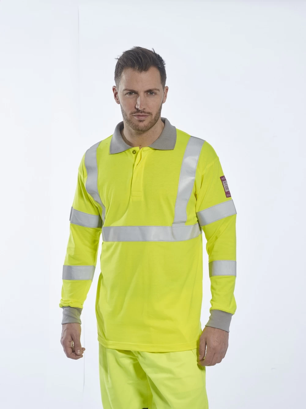 Portwest FR77 – Flammhemmendes, antistatisches Warnschutz Polo-Shirt Langarm mit Reflexstreifen