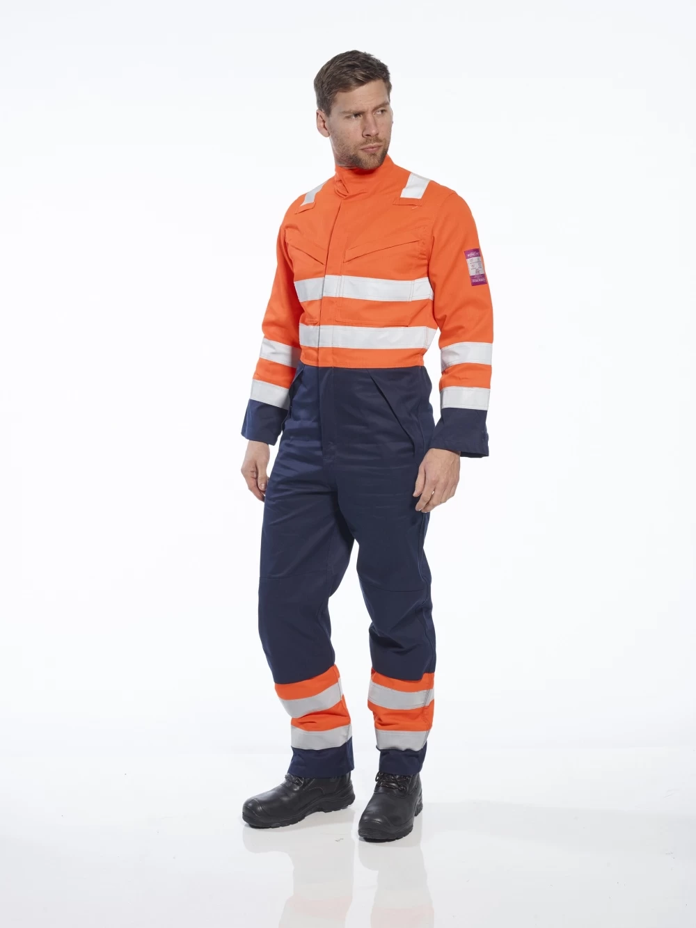 - Antistatischer, flammhemmender Warnschutz-Overall mit verstärktem Kniebereich