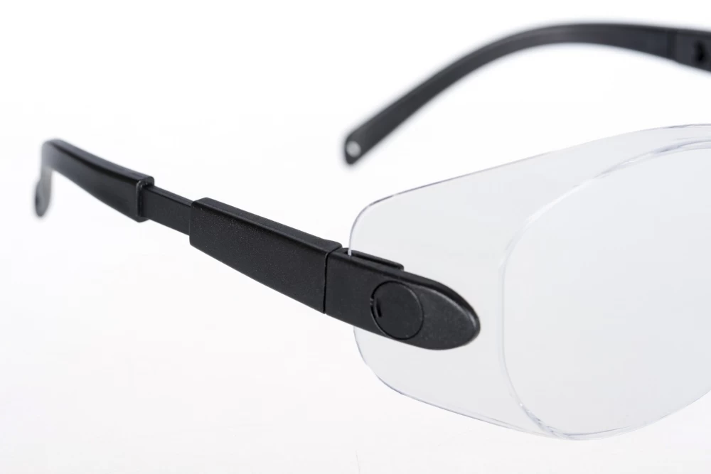 - die Arbeitsbrille weist transparenten Linsen, die gegen 99% der UV-Strahlen reflektieren