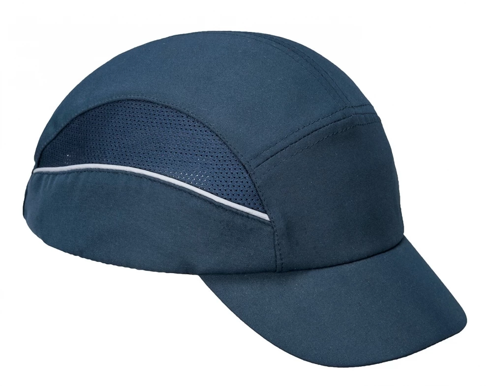 Innovativ designte Anstoßkappe. Die Anstoßkappe bietet maximale Belüftung durch seitliches Netzfutter und breite Öffnungen an der Schutzschale. Modernes Textildesign mit reflektierenden Paspeln für mehr Sichtbarkeit. In vielen Bereichen einsetzbar.