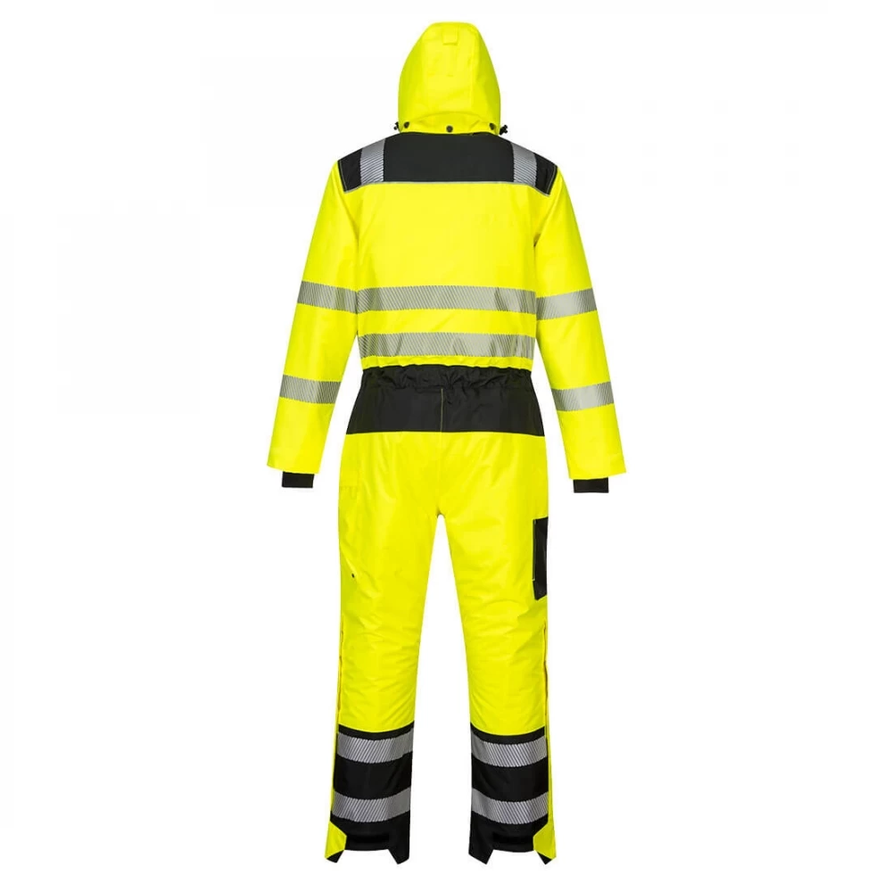 Ein hochwertiger wasserdichter PW3 Warnschutz-Overall, der absolute Sicherheit mit modernem Design kombiniert. Hergestellt aus unserem bekannten 300D Oxford PU-beschichteten, strapazierfähigen, schmutzabweisenden Gewebe, bietet dieser moderne Arbeits Overall viele herausragende Merkmale, darunter eine abnehmbare, mit einer gesteppten gefütterten Kapuze, eine schwere Winterpolsterung für maximalen Wärmeschutz, extra lange Seitenreißverschlüsse an den Beinen zum einfachen An- und Ausziehen und 8 funktionelle, sichere Aufbewahrungstaschen, einschließlich Kniepolstertaschen, die von oben beladen werden können.