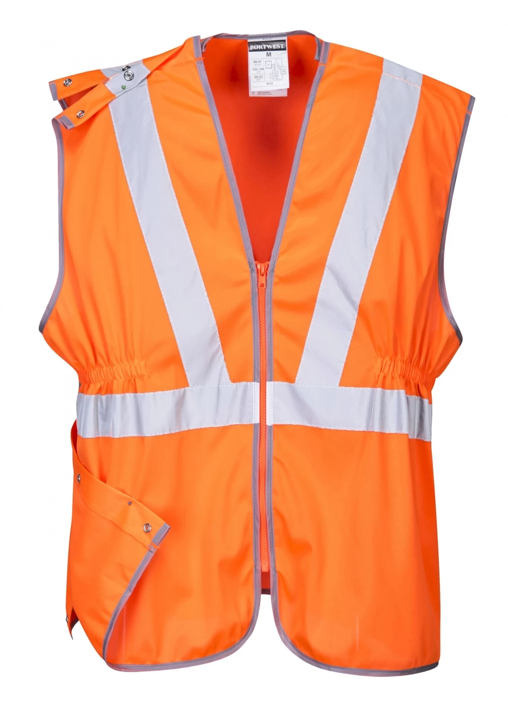 Diese lange Warnschutz-Weste verfügt über ein spezielles Design, dass die Mitarbeiter sich verheddern können und ist somit für Gleisarbeiten bestens geeignet. Die Arbeitsweste besitzt ein elastisches Rückenteil,einen Reißverschluss und eine 4-Punkte-Aufreiß-Funktion an den Schultern und Seitennähten.