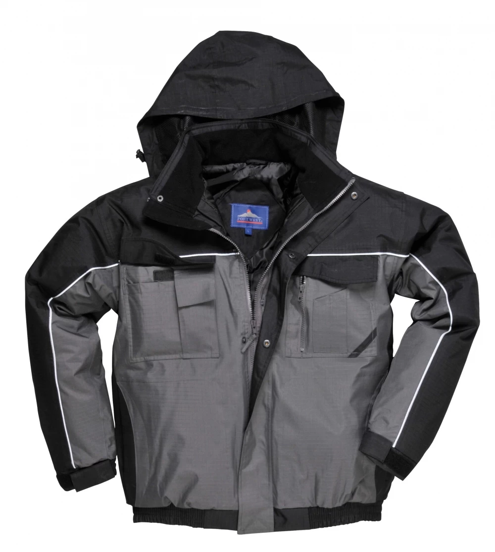- die wasserdichte Arbeits Bomberjacke hat eine verstaubare Kapuze für zusätzliche Funktionalität