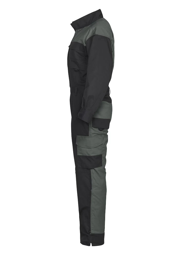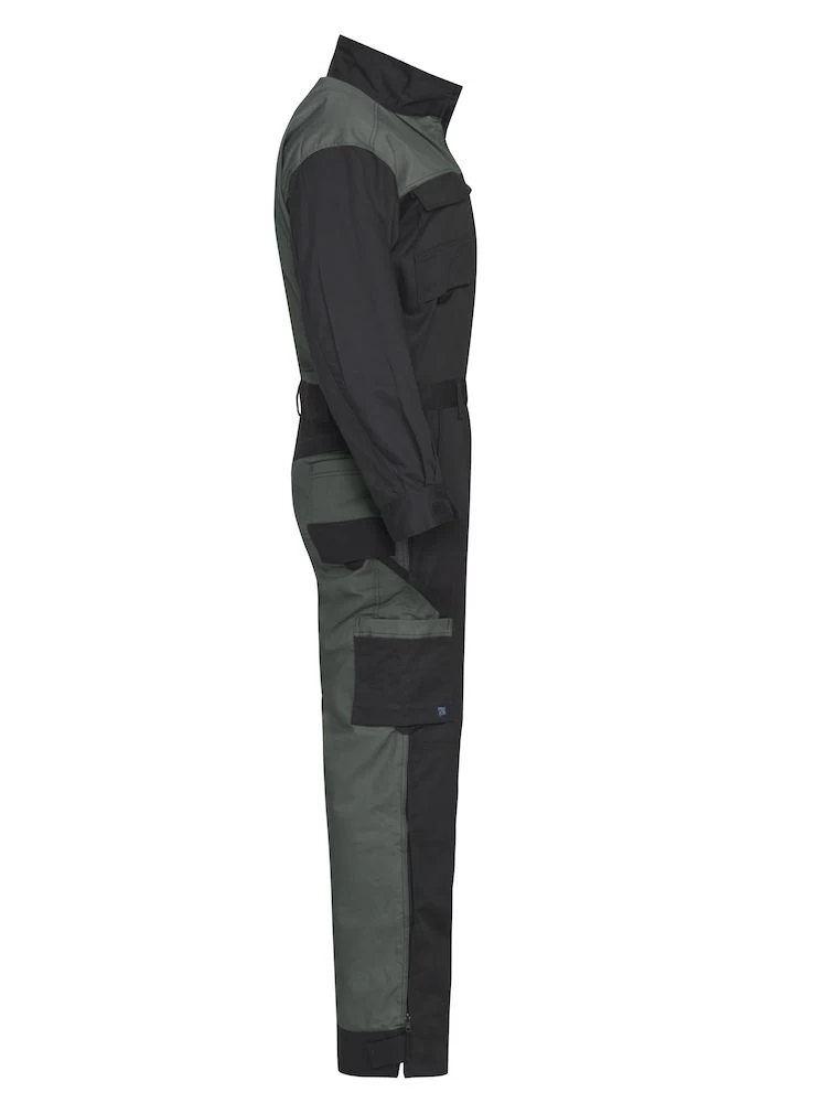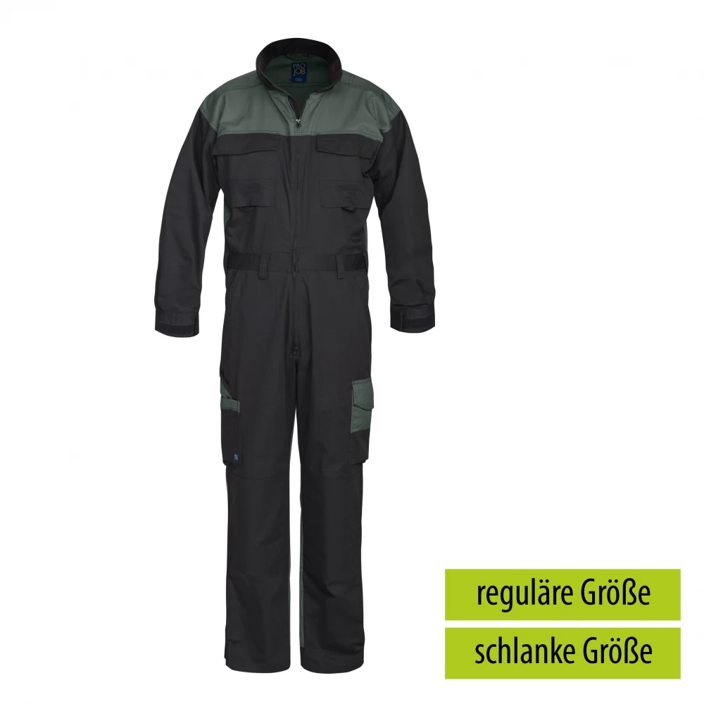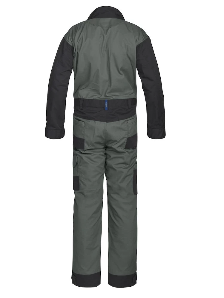 Zweifarbiger Overall mit Zwei-Wege-Reißverschluss bis hinauf zum Kragen. Maximale Bewegungsfreiheit in den Ärmeln und im Rücken. Zwei Brusttaschen mit Klappe. Tiefe Seitentaschen vorne, Sicherheitstasche mit Reißverschluss auf der rechten Seite und zwei Gesäßtaschen. Zwei Beintaschen mit Platz für Schreibgeräte und Mobiltelefon. Reißverschluss im Hosenbein bis hinauf zu den Knien. Zollstocktasche. Elastische Rückenpartie, individuell anpassbar und Gürtelschlaufen. Schlaufen unter den Brusttaschen, Beintaschen und unter den Gesäßtaschen zur Befestigung von Inbags. 65% Polyester, 35% Baumwolle, 245 g/m²