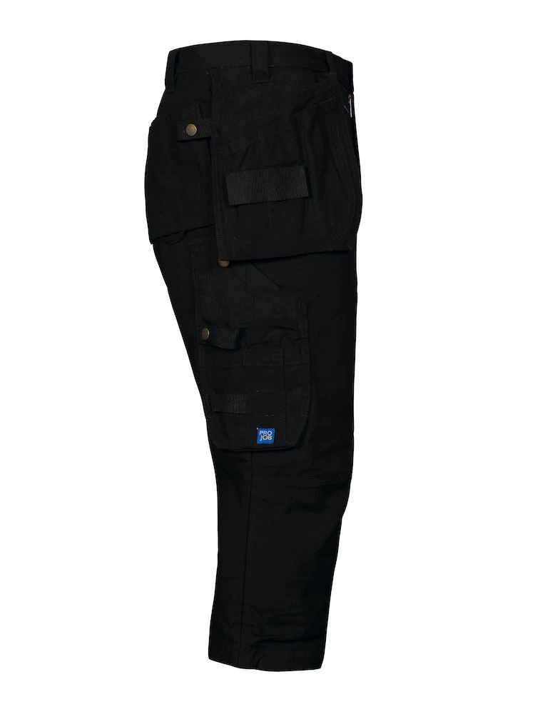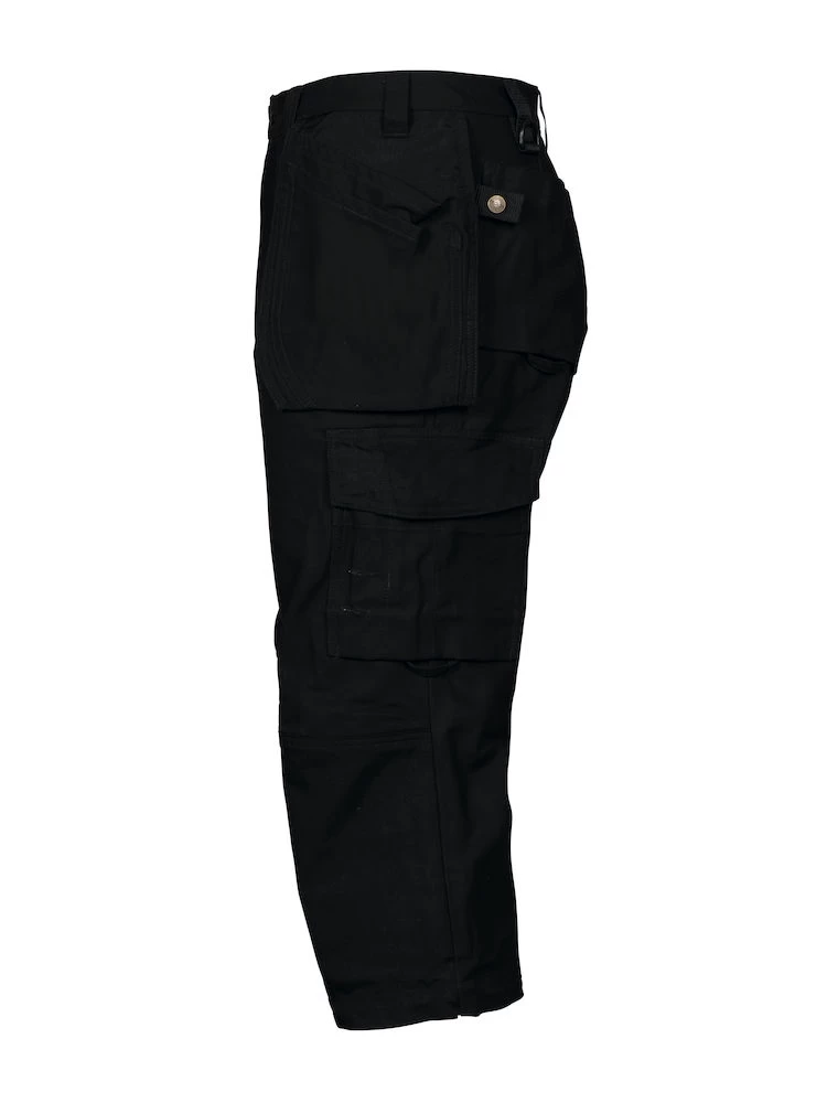 Piratenhose aus strapazierfähiger Baumwolle und Verstärkungen aus Cordura®. Holstertaschen, die in Seitentaschen verstaut werden können, eine mit zusätzlichen Taschen und eine mit Schlaufen für Werkzeuge. Beinseitentasche mit Patte und Druckknopfverschluss, interne Handytasche und Halterung für Ausweis. Weitere Beintasche für Zollstock und Tasche für Werkzeuge mit Messerknopf. Zwei verstellbare Hammerschlaufen. Zwei D-Ringe am Bund befestigt. Innentaschen für Knieschützer, in zwei Höhenstufen verstellbar. 100% Baumwolle, 375 g/m² Verstärkungen: 100% Polyamid, Cordura®
