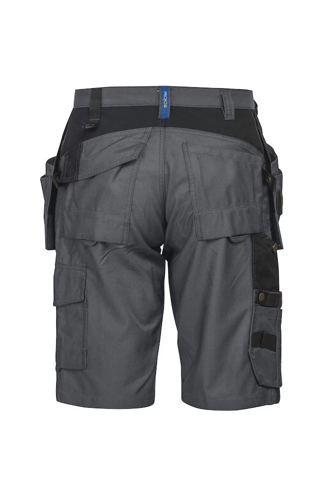 Zwei freihängende Nageltaschen, die eingesteckt werden können – eine mit Zusatztaschen, eine mit Werkzeugschlaufen. Die Nageltaschen sind mit 100% Cordura verstärkt. Beintaschen mit Handy-Tasche, Taschen für Schreibgeräte und Werkzeug. Zwei verstellbare Hammerschlaufen. Zwei D-Ringe. Zollstock-Tasche mit Werkzeug-Tasche und Messerknopf. Linke Gesäßtasche mit Klappe. Gesäßtschen und Beintaschen vorbereitet für Inbags. 70% Polyamid, 30% Baumwolle, 260 g/m² Verstärkungen: 100% Polyamid, Cordura®