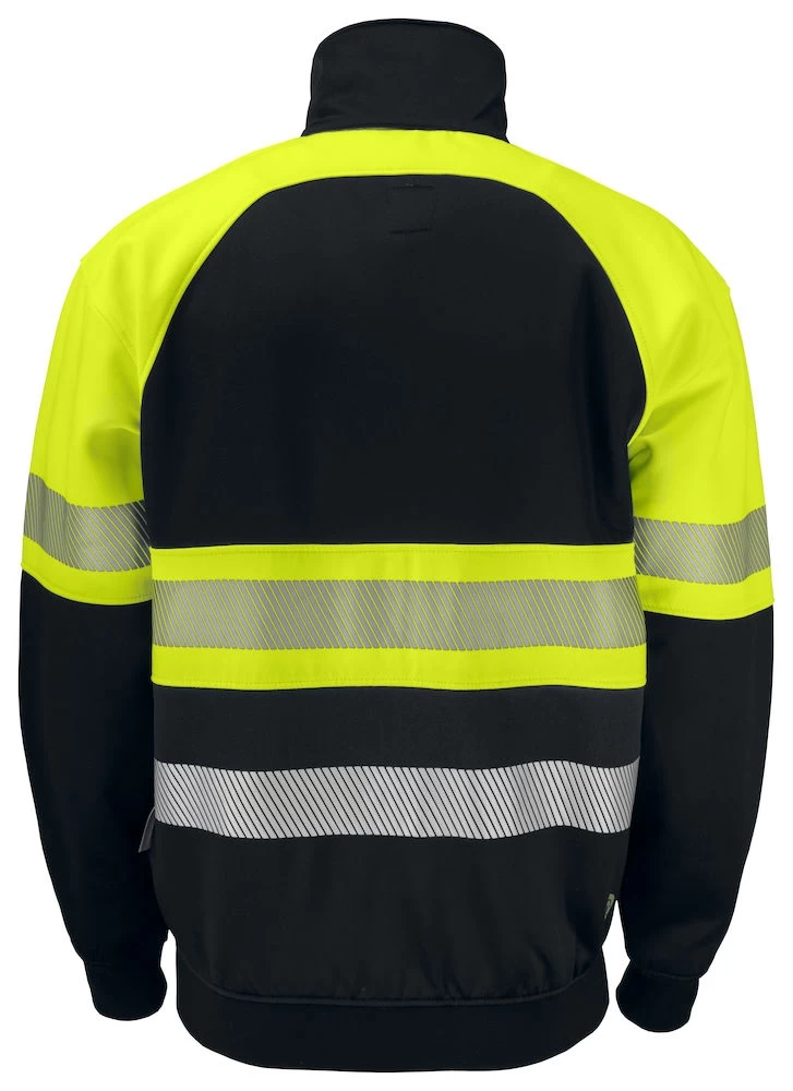 Warnschutz-Oberteil mit bis zum Kragen durchgehendem Reissverschluss und Seitentaschen mit Reissverschluss. Eingearbeitete Reflektoren gewähren höchste Flexibilität und Atmungsaktivität. Rippenstrickkragen und -ärmelenden. Stehkragen für hohen Komfort. 65% Polyester, 35% Baumwolle, 300 g/m²