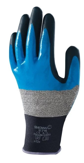 Showa 376R Arbeitshandschuhe aus Nylon und Polyester mit doppelter Beschichtung aus Nitril