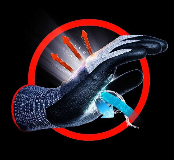 - Die Eigenschaften der Mikrofaser wirken feuchtigkeitsableitend und verbessern die Atmungsaktivität -für trockenere Hände und weniger Schweiß
