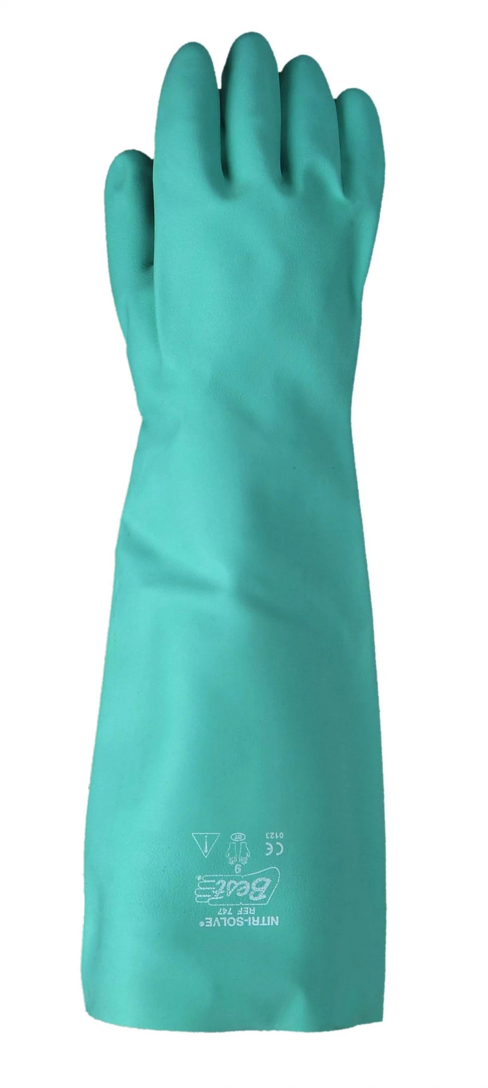 Die chemikalienresistente Sicherheitshandschuhe sind zugelassen für den Umgang mit Lebensmitteln. Der chemikalienresistente Schutzhandschuh enthält keine Silikone