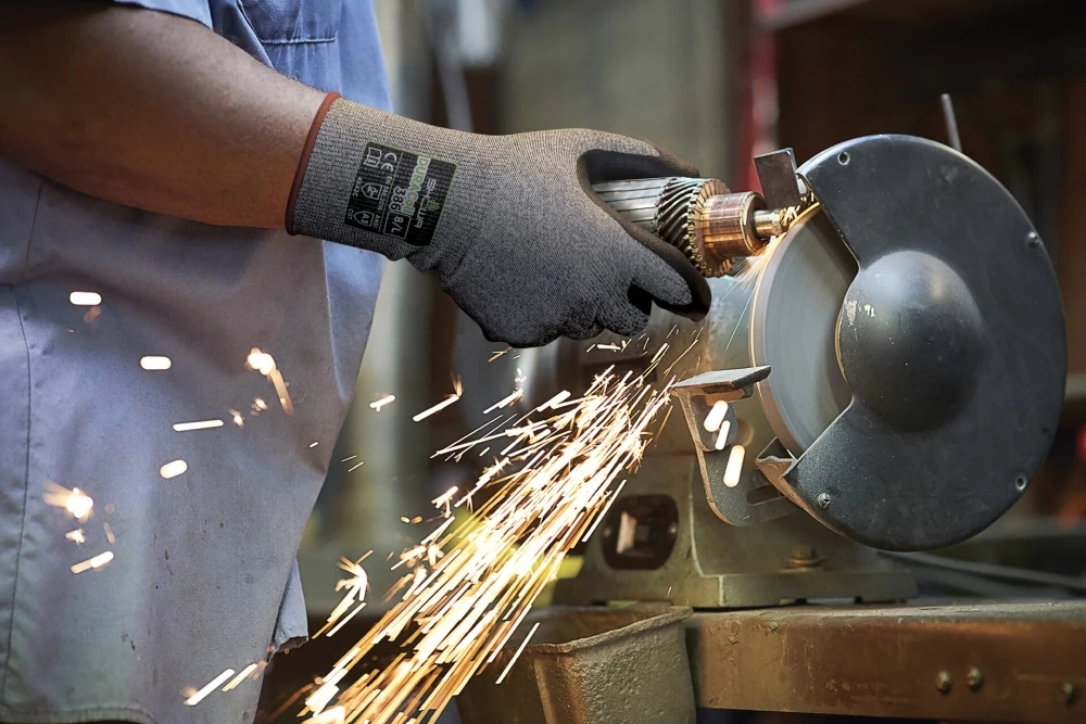 Die Schnittschutzhandschuhe SHOWA DURACOIL 386 aus DURACoil-Gewebe mit Mikroporöse Nitrilbeschichtung verstärkt mit HPPE