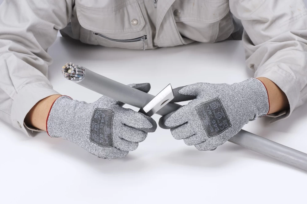 - der Anti-Schnitt-Handschuhe mit HPPE weist ein atmungsaktives Gewebe mit Strickstärke 13 G. auf