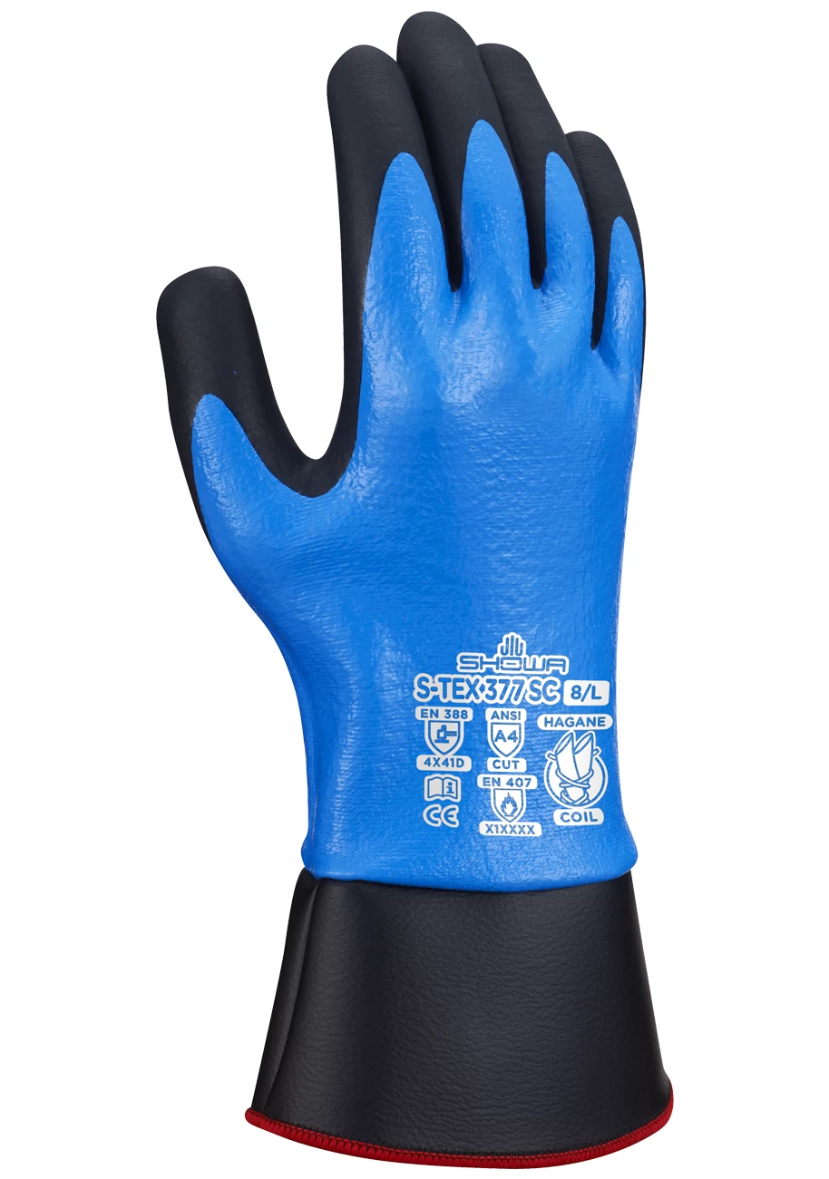 - S-TEX 377SC Handschuhe verfügen über feste, widerstandsfähige Bündchen, die Schutz bis über das Handgelenk bieten und im Notfall schnelles Ausziehen ermöglichen