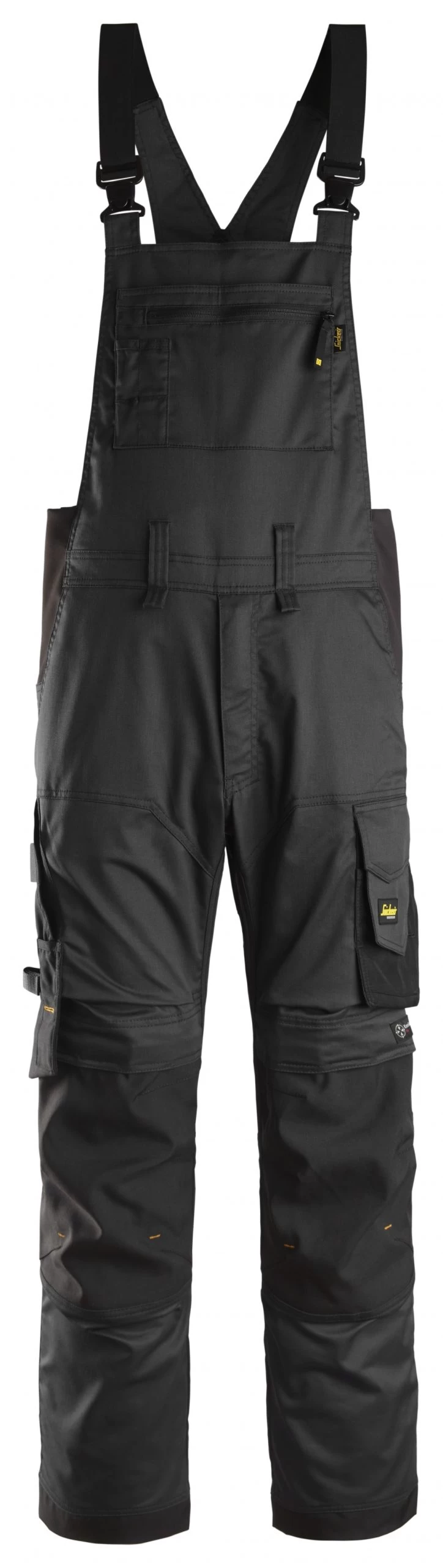 Klassische Arbeitslatzhose aus weichem Baumwoll-Polyester-Gewebe. Ein elastisches Rippengewebe oben an den Seiten der Hose und ein 4-Wege-Stretch-Einsatz hinten bieten optimalen Sitz und Komfort. Weitere Besonderheiten des Kleidungsstücks sind die verstellbaren Hosenträger, eine Brusttasche mit Reißverschluss, der ergonomische Beinschnitt und das KneeGuard™-System.