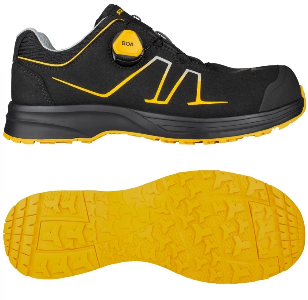 SOLID GEAR Oasis schafft einen überlegenen Kompromiss zwischen Leichtgewicht und Dämpfung. Erreicht wird dieses Ergebnis durch ein Mikrofaser-Obermaterial mit TPU-Verstärkung und einer hochdämpfenden, gegossenen PU-Zwischensohle. Darüber hinaus bietet dieser bequeme Schuh dank des Musters und der Mischung auf der Gummilaufsohle hervorragenden Grip. Oasis ist mit dem BOA® Fit-System für eine einfache Schnürung ausgestattet und bietet eine ähnliche Passform und einen einfachen Einstieg wie ein sportlicher Schuh. Nichtmetallischer Schutz in Zehenkappe und Penetration Board. ESD-Funktion gemäß EN : 2002.