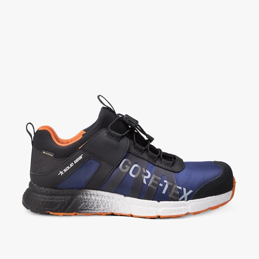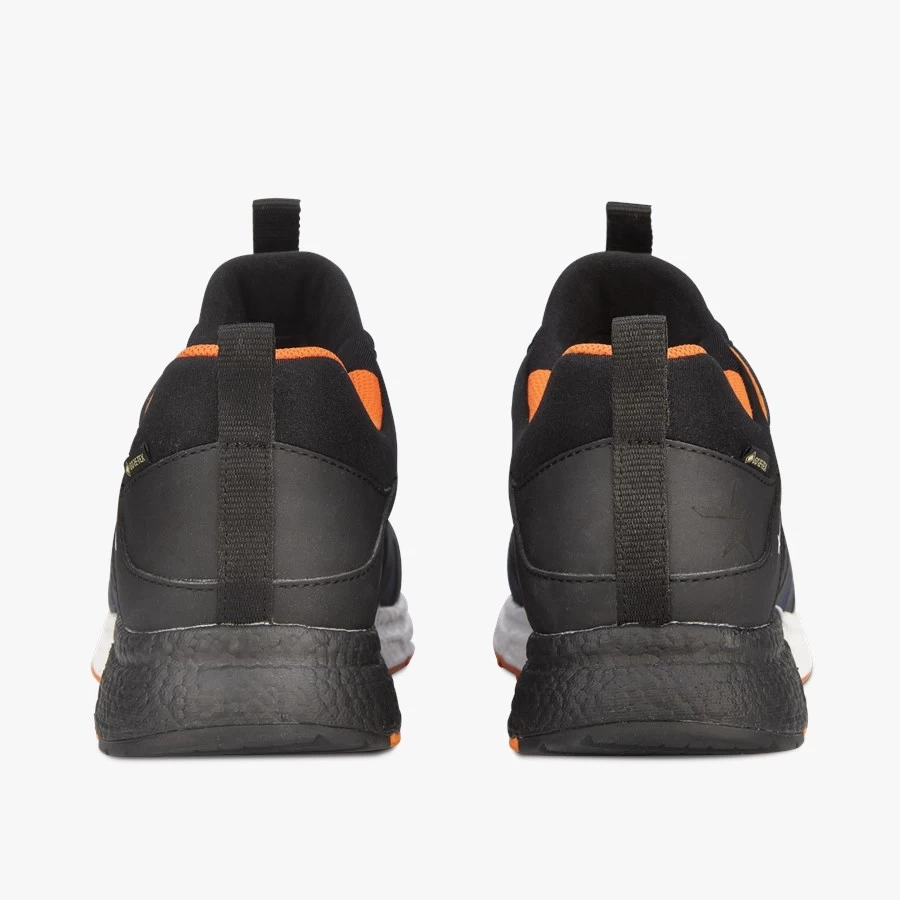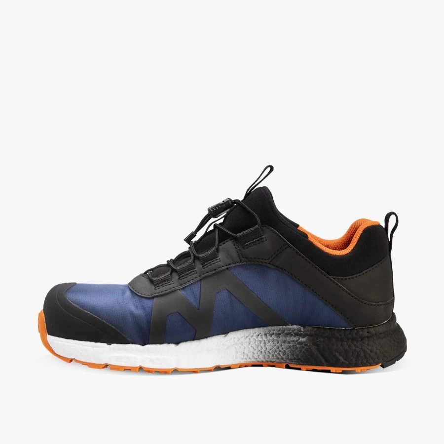 Der Revolution 2 GTX vereint die komplette ETPU-Technologie mit GORE-TEX®. Der Schuh bietet Dämpfung und Komfort für endlose Stunden des Gehens und reduziert gleichzeitig den Druck. Das leichte CORDURA® in Verbindung mit der GORE-TEX® Stretch-Technologie sorgt für ein erstaunliches Gefühl in Bezug auf Passform und Atmungsaktivität und hält den Fuß trocken. Der Schuh wird sowohl mit Speed-Schnürung als auch mit normalen Schnürsenkeln in Orange/Marine geliefert, so dass Sie ihn ganz nach Ihren Wünschen anpassen können. Am Ende des Tages werden Sie ein völlig anderes Gefühl in Ihren Füßen und Ihrem Körper haben, als bei herkömmlichen Sicherheitsschuhen. Stabilisierende Fersenkappe aus gesammelten Meeresabfällen wie Fischnetzen. Um optimalen Schutz zu bieten, ohne auf Komfort und Nachhaltigkeit zu verzichten, verwendet der Revolution 2 GTX die speziell entwickelte, hoch rückfedernde OrthoLite®-Einlegesohle, die hauptsächlich aus recycelten Materialien besteht.