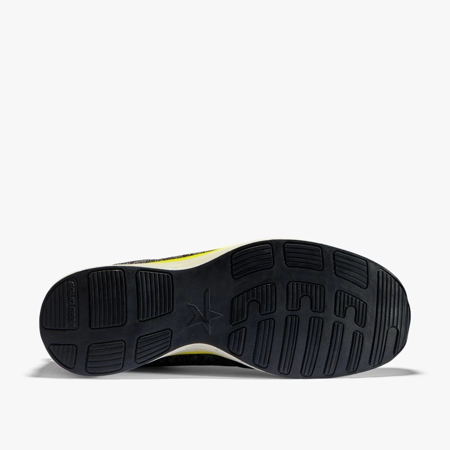 Der immens beliebte Solid Gear Haze wurde jetzt mit klassischen Schnürsenkeln entwickelt. Solid Gear hat neue Details entworfen und das Obermaterial verstärkt, und der Style startet jetzt in Größe 35. Außerdem bringt eine einzigartige nachhaltige Bloom-EVA-Zwischensohle den Komfort für einen sportlichen Sicherheitsschuh auf die nächste Stufe. Das StarKnit-Obermaterial ohne Nähte verleiht dem Haze Saturn eine fantastische Atmungsaktivität und minimiert alle Nahtfehler. Der Haze Saturn verwendet die speziell entwickelte, hoch rückfedernde OrthoLite®-Einlegesohle, die hauptsächlich aus recycelten Materialien besteht.