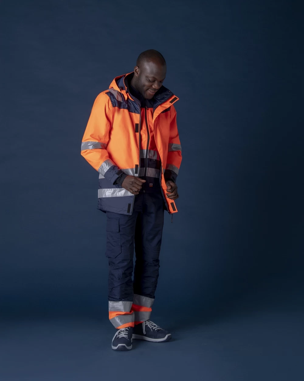 Der Warnschutz Parka Bicolor ist Teil der Tricorp 20/20 Vision-Kollektion und ist nach EN ISO 20471:2013 Klasse 2 zertifiziert. Dadurch ist der Träger bei Tag und Nacht sichtbar und geschützt. Neben verbesserter Sichtbarkeit bietet diese Jacke dank der EN 343 Klasse 3/3-Zertifizierung auch Schutz gegen Niederschlag (Regen, Schnee), Nebel und Feuchtigkeit. Die Jacke hat einen abnehmbare Kapuze. Die vielen Taschen bieten reichlich Stauraum. Durch den Druckerreißverschluss kann der Parka optimal veRotelt werden. Beim Bücken bleibt der Rücken durch ein verlängertes Rückenteil geschützt. Die Jersey-Bündchen mit Daumenöffnung bieten zusätzlichen Schutz und halten die Hände warm. Der Saum des Parkas kann mittels Tunnelzug individuell verstellt werden.