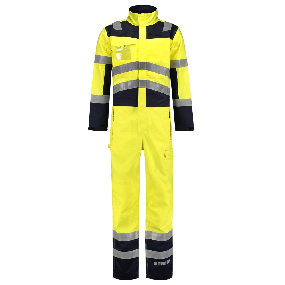 Der Overall Mulitnorm Bicolor besteht aus 74% Baumwolle, 25% Polyester und 1% Carbon. Gewicht: 320 g/m2. Dieser Overall ist schwer entflammbar, antistatisch. Er schützt gegen flüssige Chemikalien, beim Schweißen und ähnlichen Verfahren sowie gegen die thermischen Gefahren eines Lichtbogens. Dank Zertifizierung nach EN ISO 20471 bietet dieses Produkt beste Sichtbarkeit bei Tag, Dämmerung und Nacht.