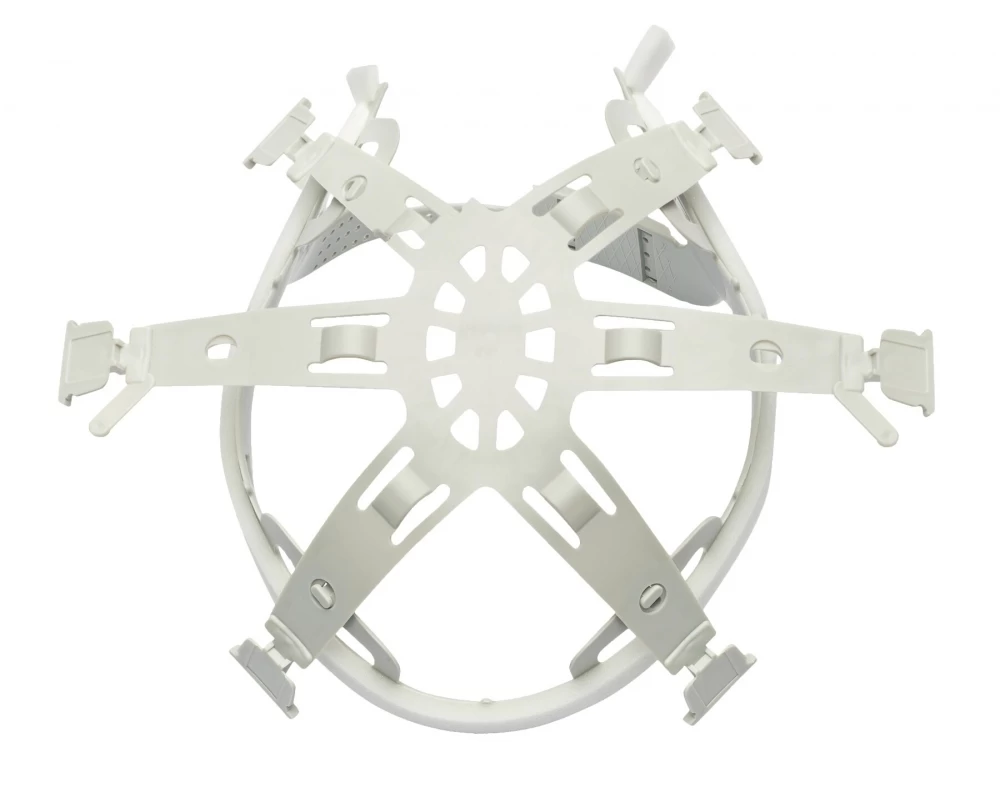 - der Schutzhelm weist eine Kinnriemen Halterung auf