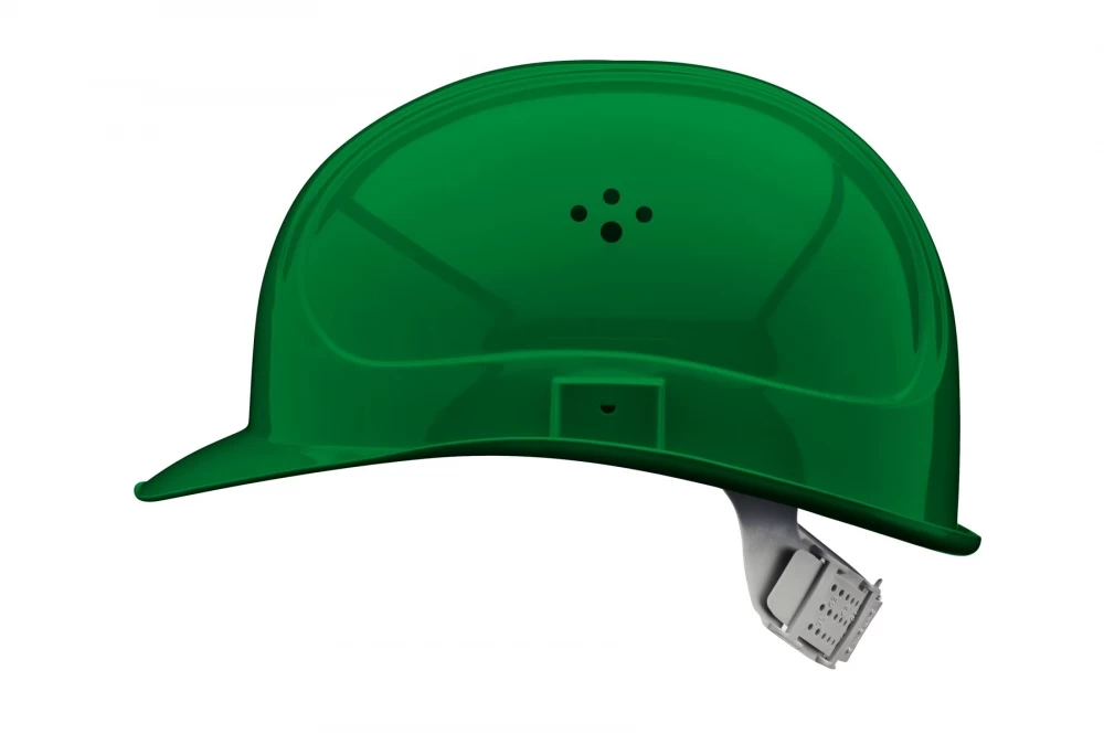Sicherheitshelm bietet universelle Form mit im Nacken heruntergezogener Helmschale; Schutzhelm mit hochsaugfähigem, umlaufendem Schweißband hergestellt; der Arbeitshelm verfügt über Regenrinne und seitliche Slots für Gehörschützer (30 mm)